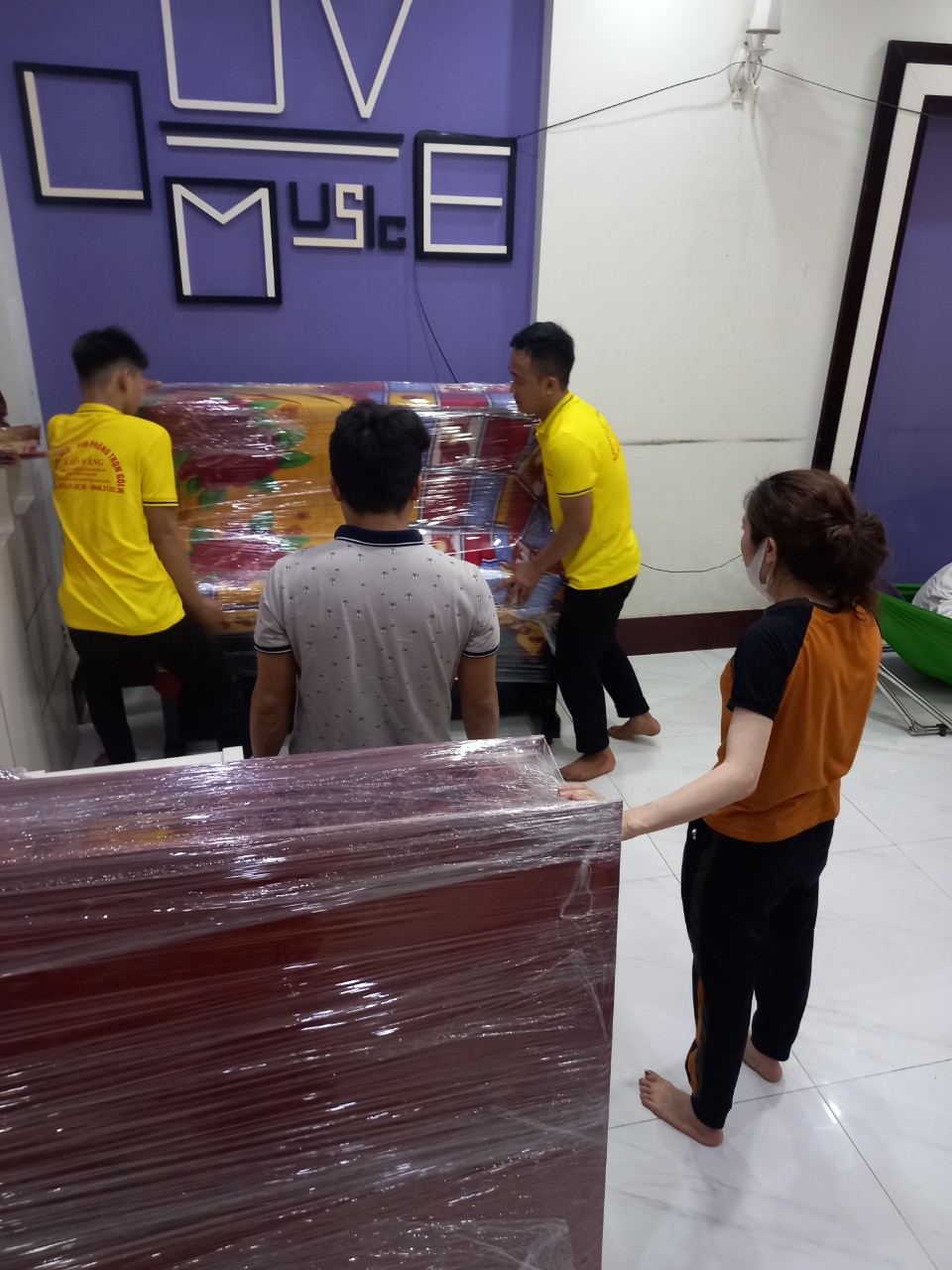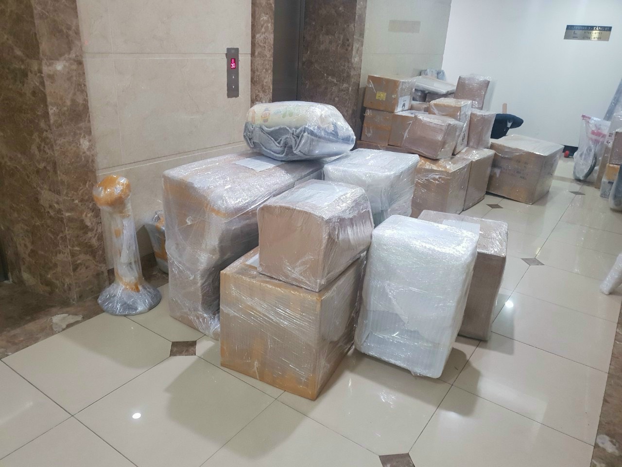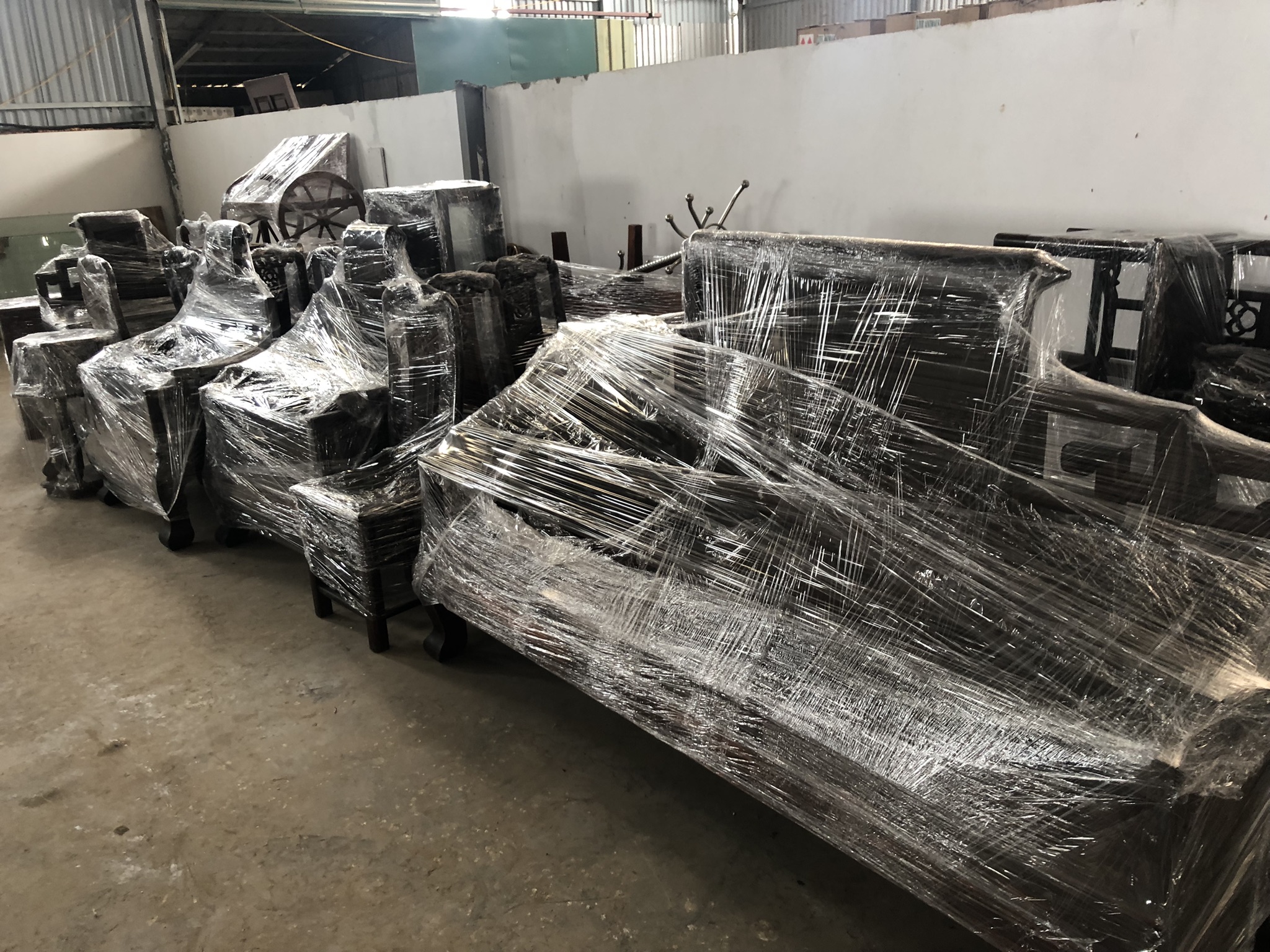 Đồ đạc được bọc nilon, chống sốc và đánh số trước khi vận chuyển lắp đặt